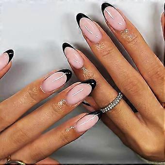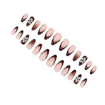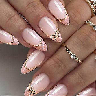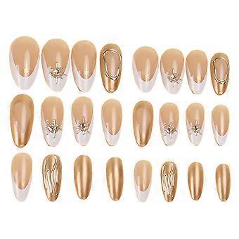 Press on Nail Fransk Guldkant Mandelspetsar Rosetter Heltäckande Självhäftande Nagel För Dam Speciella Tillfällen Flerfärgad