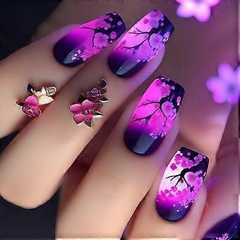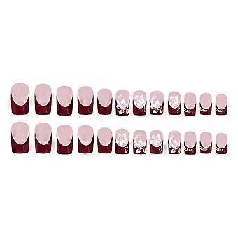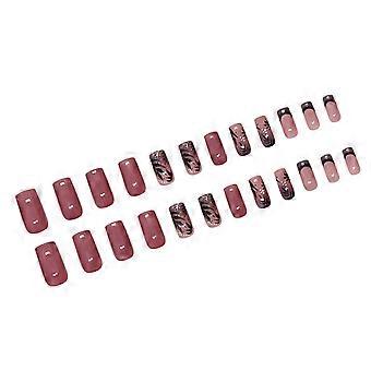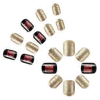 Kort och medelstor press på naglarna 24 tabletter med falska naglar med mönsterFå dig att sticka ut från mängden Självhäftande Nail Art Set För Kvinnor Nail Art Lim 1