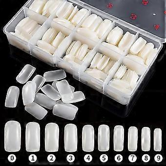 10st Extra Lång Halvtäck Falsk Nail Art Design Salongspetsar Dekoration (Transparent)