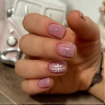 Julfest 24 st tryck-on naglar rosa snöflingeglitter juldesign lösnaglar för vardag eller speciella evenemang flerfärgade