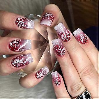 24 stycken trycknaglar röd vit snöflinga snökonst festliga lösnaglar för julfester speciella evenemangsdekorationer flerfärgade
