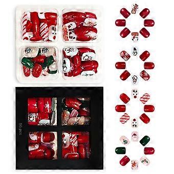 96-pack glitter rödgrön press-on nagel vit snöflinga lösnagel för fester högtider festliga flerfärgade