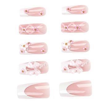 24st fransk spets press på naglar med strass och 3d blommor stick på naglar manikyr tillbehör för snygga kvinnor