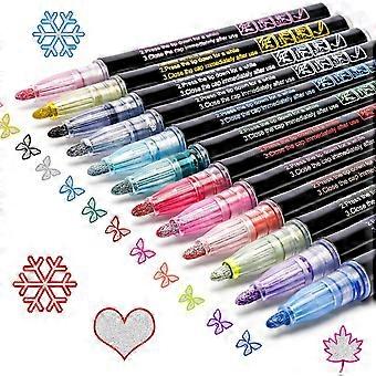 Dubbla linjer konturmarkörer Pennor 12 färger kontur pennor set för ritning kort göra kalligrafi journal YEMAA