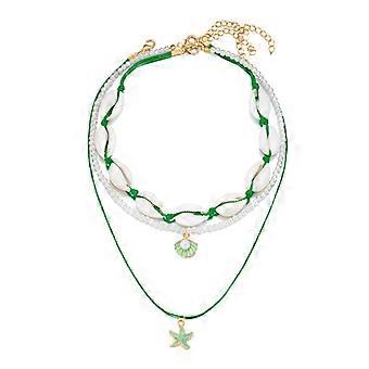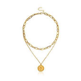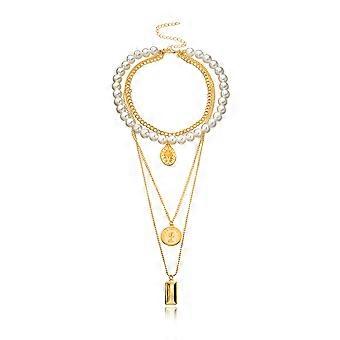 Gyllene runda pärlhalsband för kvinnor 2 st titan stålkedja