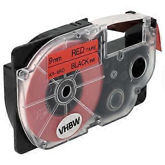 vhbw Schriftband-Kassette kompatibel mit Casio KL-C500, KL-8200, KL-8100, KL-820, KL-HD1, KL-G2 Etiketten-Drucker 8m x 9mm Schwarz auf Rot, Kunststoff