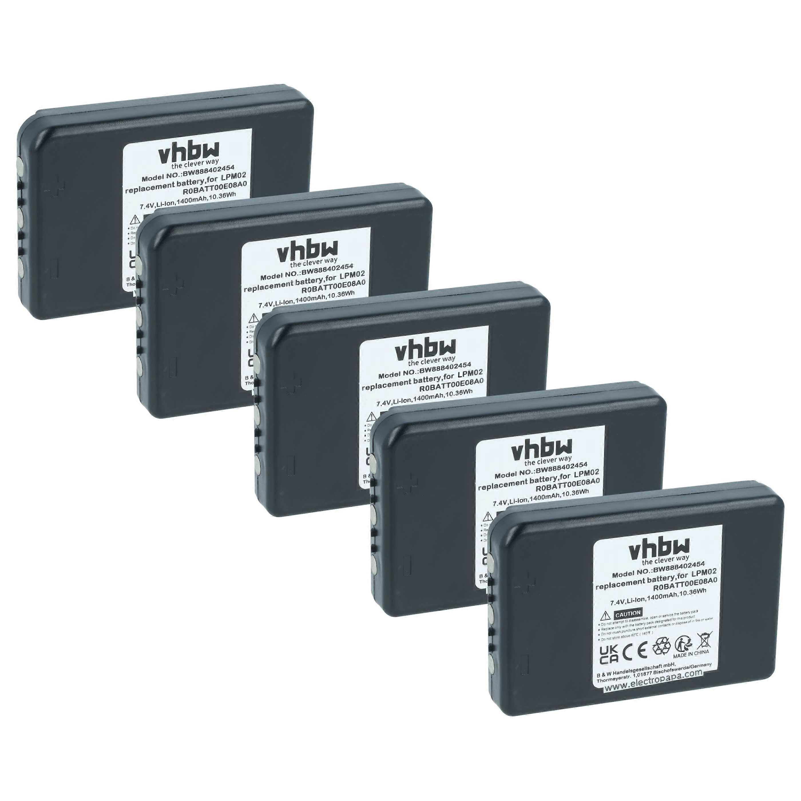 vhbw 5x Akku kompatibel mit Autec DJL, Air Dynamic, Air, DJR, AJS, DJM, AJR, AJM Industrie-Funkfernsteuerung Fernbedienung (1400 mAh, 7,4 V, Li-Ion)