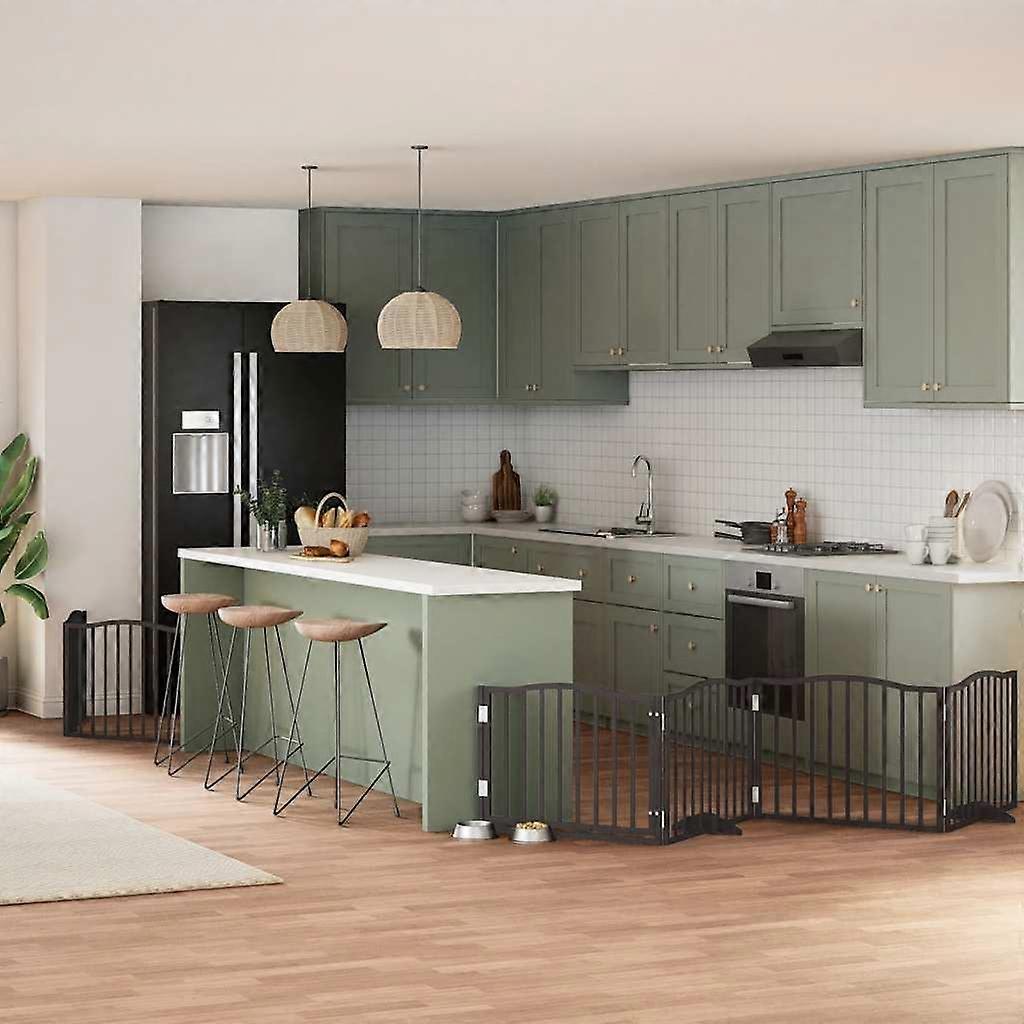 6-tlg. Hundetor mit Tür Faltbar Schwarz 480 cm Pappelholz
