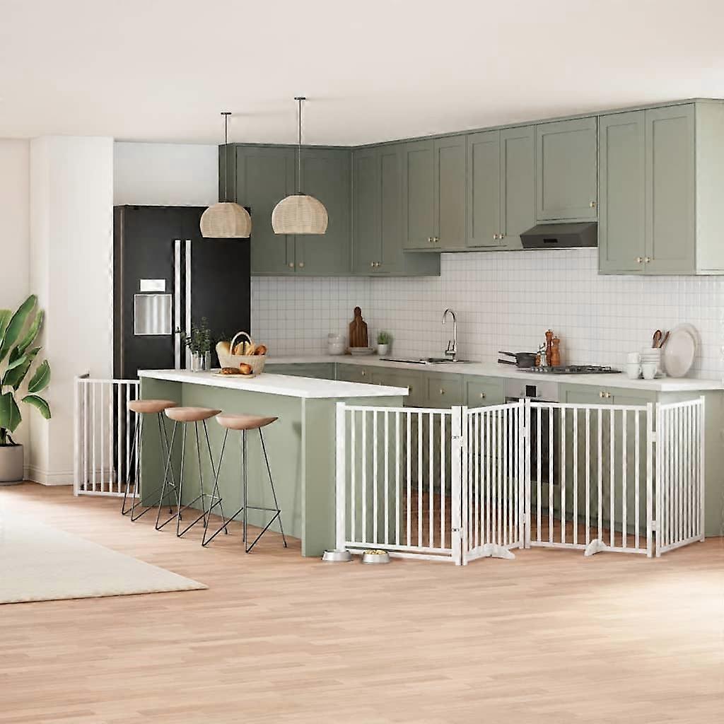 6-tlg. Hundetor mit Tür Faltbar Weiß 480 cm Pappelholz