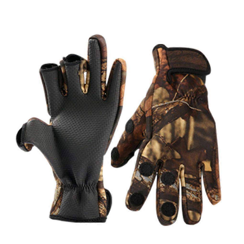 1 Pair Anti -Slip Outdoor Fishing Gloves 3 Cut Finger Sports Gloves Men Cycling Camouflage Thermal Warm