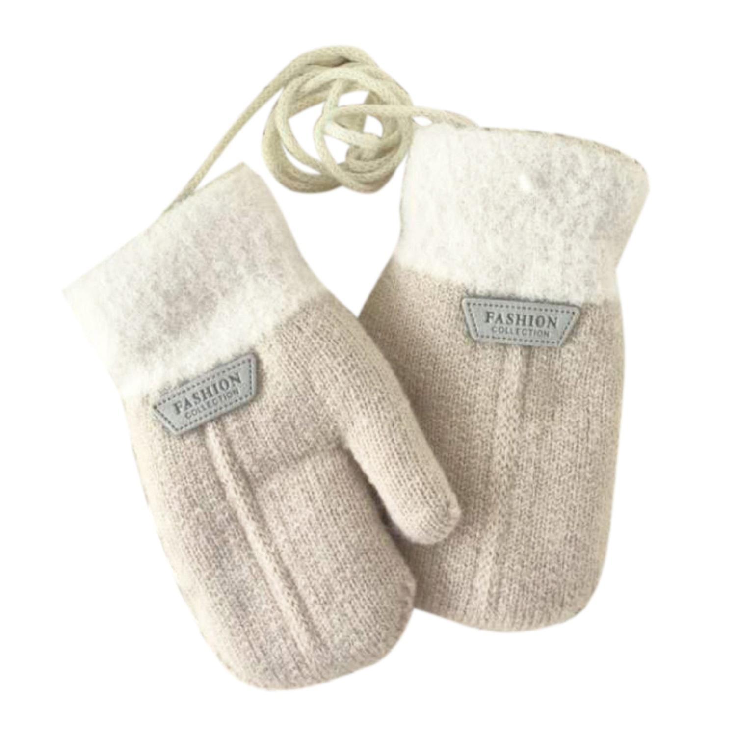1 Pair Hanging Rope Halter Thickened Fleece Lining Winter Gloves Letter Logo Solid Color Baby