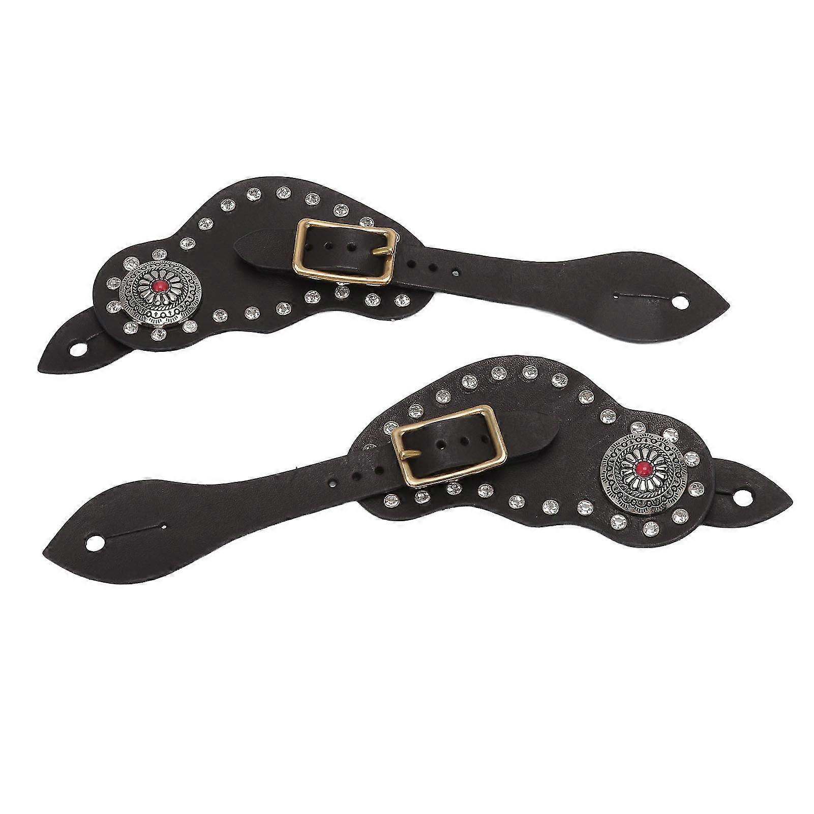 1Pair Spur Strap Leather Rhinestone Western Vintage Style Horse Riding Protective Equipment for Outdoor Black