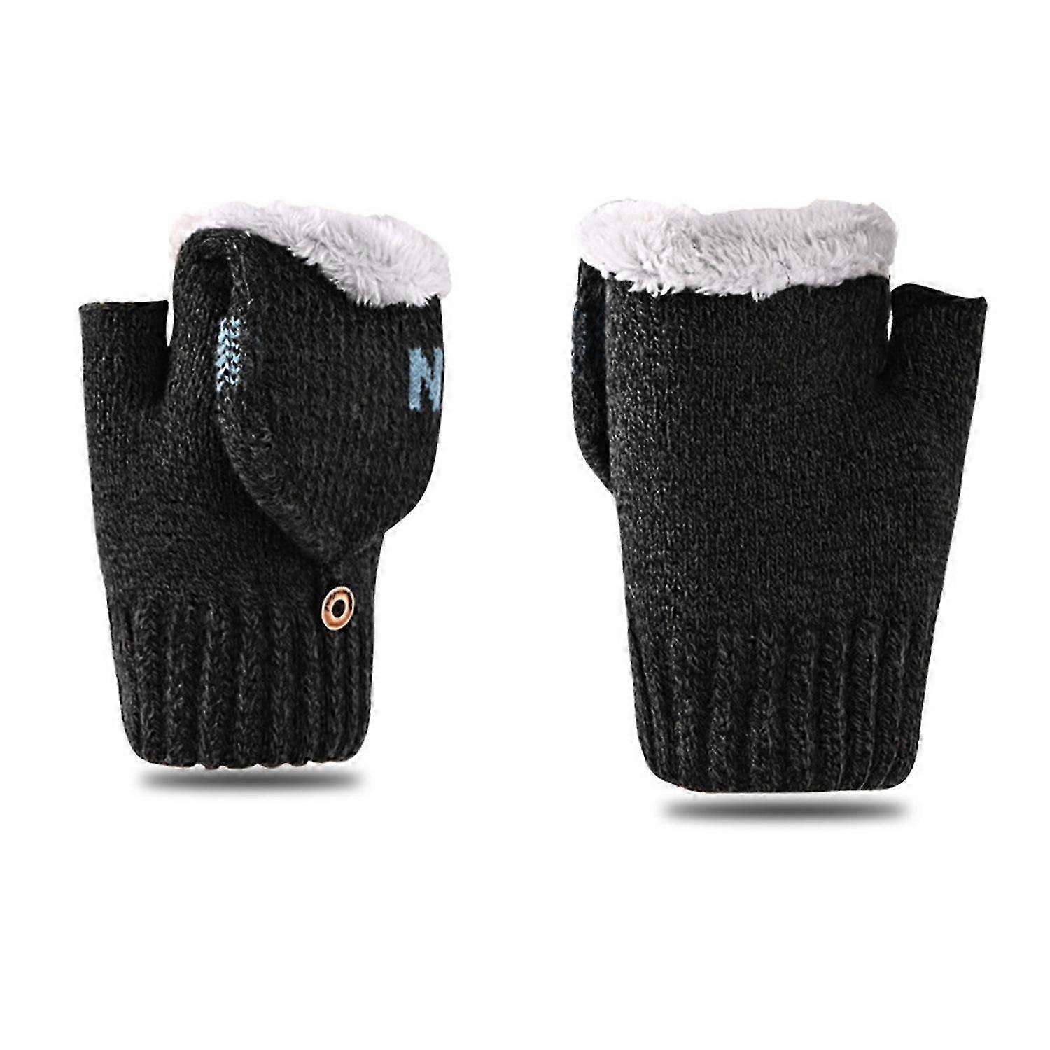 1 Pair Winter Gloves Half-finger Thickened Knitted Warm Soft Elastic Anti-slip Heat Retention Cold