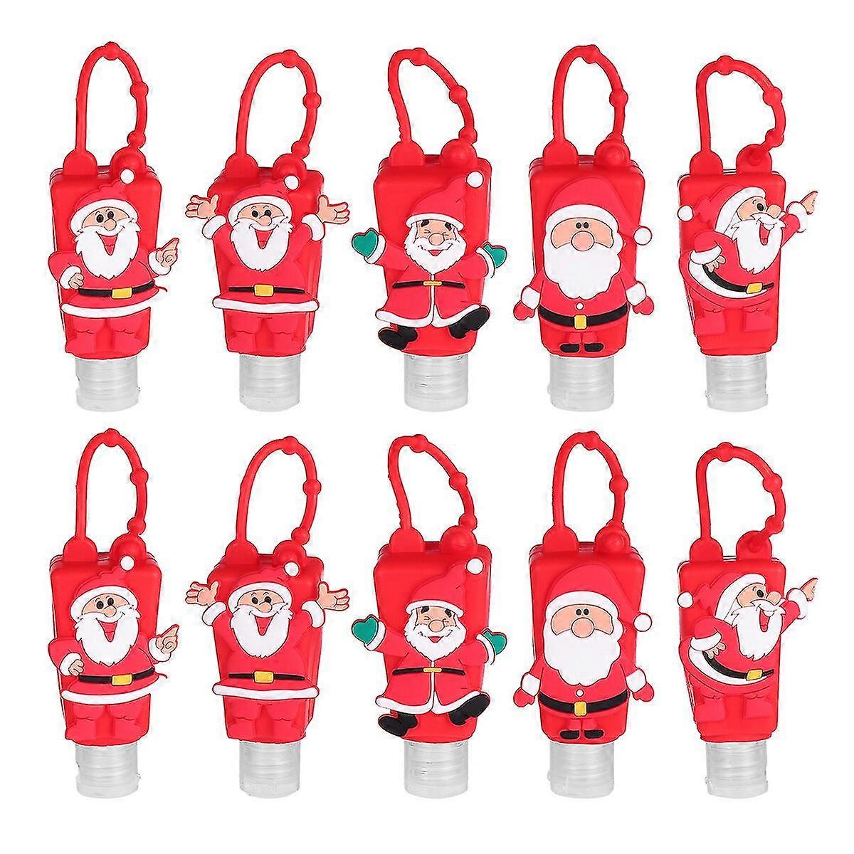 Description _x005F_x000D_ _x005F_x000D_This is a set of travel bottles.Small, empty bottles with adjustable silicone hooks are perfect for backpacks, strollers, sports bags, key rings and etc. Travel bottle is suitable for bath oil, shampoo, hand sanitizer, facial cleanser, body wash, sunscreen hand sanitizer, hand sanitizer, etc. _x005F_x000D_ _x005F_x000D_Features _x005F_x000D_ _x005F_x000D_-Material: Plastic and silicone. _x005F_x000D_-This set includes 10 transparent bottles with silicone handle and 10 adjustable and portable silicone bottle cap. _x005F_x000D_- Travel bottle is suitable for bath oil, shampoo, hand sanitizer, facial cleanser, body wash, sunscreen, etc. _x005F_x000D_- With flipped cover, it is very suitable for storing hand sanitizer for children. With Santa Clause pattern, lovely and beautiful. _x005F_x000D_- Sealed caps are useful for adding hand sanitizers to ensure no liquid leaks or spills. _x005F_x000D_- Small, empty bottles with adjustable silicone hooks are perfect for backpacks, strollers, sports bags, key rings and anywhere you go for travel, daily life, camping, business trips.Packing list1 x Set 10 Pcs Travel Bottles