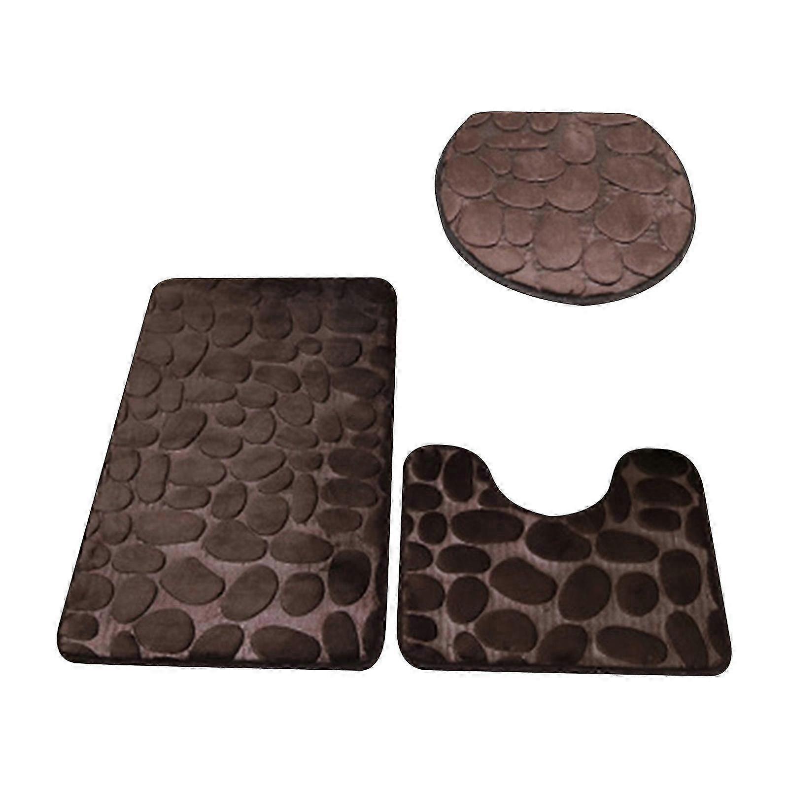 1 Set Cobblestone Toilet Lid Cover Soft Polyester Anti-skid Bath Mat - Coffee