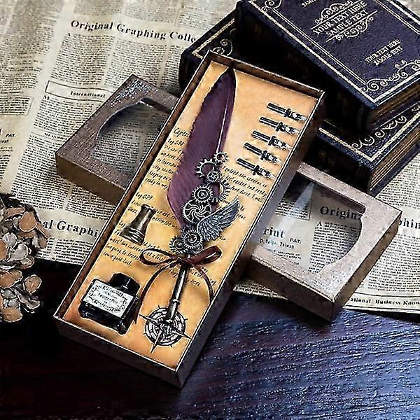 1 Set Vintage Feather Dip Pen Ink Set Fountain Pen Set