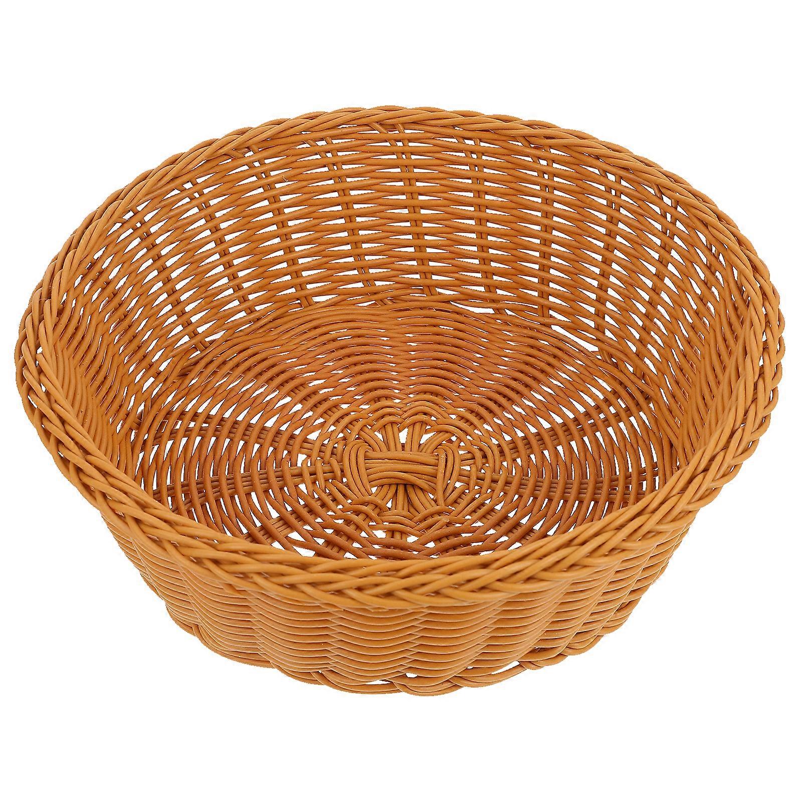 1Pc Plastic Basket Imitated Rattan Woven Basket Bread Food Storage Container