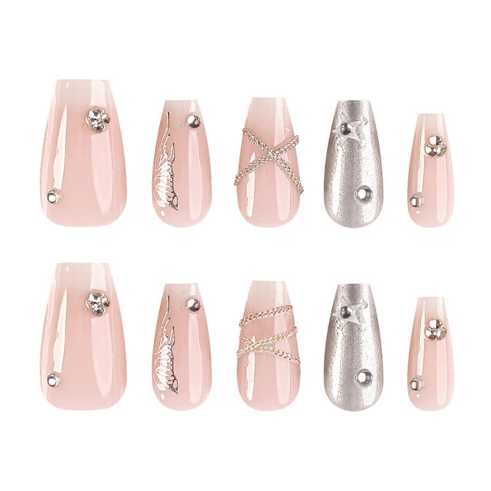 Features: 1.Premium Material: Made of premium resin, is a chemical material, no harm to the nails and health. Don't worry about nail fracture because of the same toughness and elasticity as natural nails. 2.Graceful Design: These fake nails make your nails eye-catching, very realistic looking and comfortable to wear, suitable for nail salons and DIY manicures at home. 3.Beginner Friendly: These fake nails are perfect for nail salons, but also perfect for nail learners or beginners who want to do DIY nail art at home. They can also be combined with other nail decorations to create your own style and thus show your personality. 4.Fashionable Outfits: Artificial press on nails art is very suitable for dinner parties, birthday parties, Halloween, Christmas, weddings. It must be your essential accessory. 5.Suit for Various Occasions: Fake nails is easy for nail professionals or nail art learners. Great gift for your wife, girlfriend, mother or sister, perfect for parties, dates, weddings, etc. Specifications: Material: Resin Quantity: 10PCS Size,Thumb(mm),Index Finger(mm),Middle Finger(mm),The Fourth Finger(mm),Little Finger(mm) XS,16,13,13.5,13,10 S,17,13.5,14.5,13.5,11 M,19,14.5,15,14.5,12 Notice: 1.Actual color may be slightly different from the image due to light effect.2.Please allow 1-3cm deviation due to manual measurement. Include: 1 Set * False nails (10pcs included) 10PCS * Jelly glue 1 * Nail rub strip