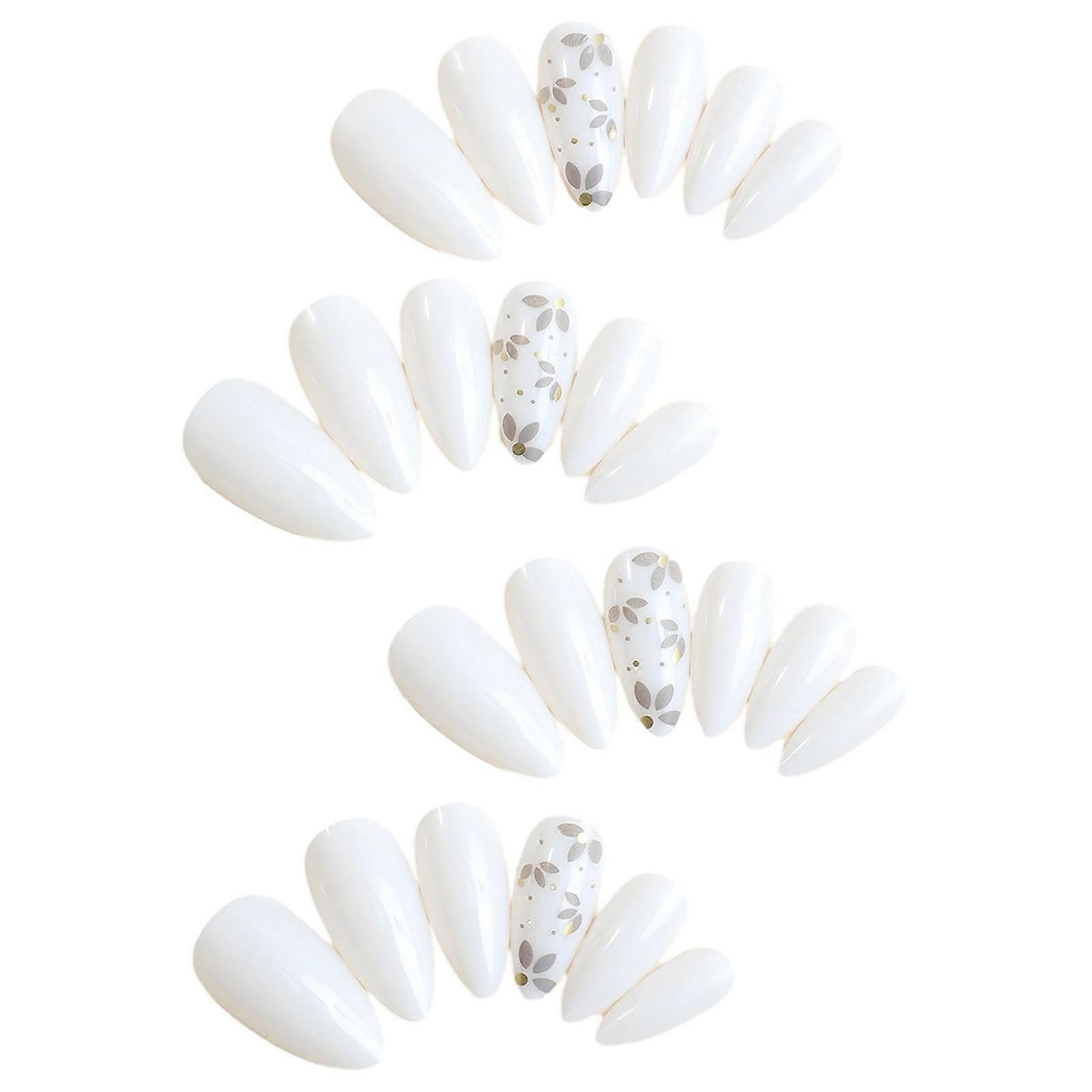 Features: Trendy Designs: These artificial nails feature a variety of stylish designs, including floral patterns and simple yet elegant styles, perfect for women and girls looking to enhance their hand decorations. Quality Material: Crafted from durable resin, these false nails offer a glossy finish and a comfortable fit, ensuring long-lasting wear and a professional salon look from the comfort of home. Easy Application: With a convenient press-on design, these almond-shaped nails are simple to apply and remove, making them ideal for nail art enthusiasts and those seeking a hassle-free salon experience. Versatile Sizing: This set includes 24 pieces of mid-length and short white nails, providing options for different preferences and occasions, catering to a wide range of nail shapes and sizes. Gift-Worthy Packaging: These fake nails make for a thoughtful gift for friends, family, or oneself, adding a touch of charm to any nail salon at home. Specification: Material: Resin Quantity: 24pcs Gender: Women Notes: 1. Due to the lighting effects and shooting angles, there is a color difference in the product, please understand. 2. Due to manual measurement, there is a tolerance in the product size. Include: 1 Set * False Nails (24pcs included) 24pcs * Jelly Glue 1pc * Nail File
