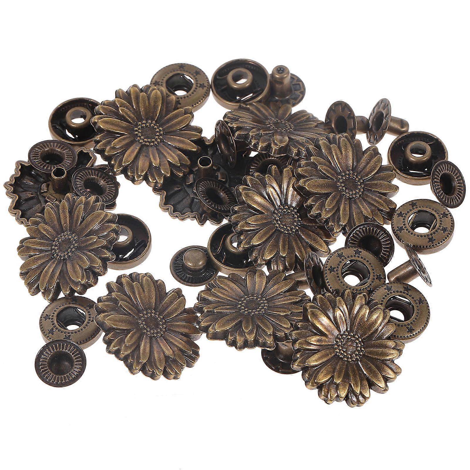 10 Sets Zinc Alloy Retro Daisy Shape Snap Button Costume Bag Buckle Fittings Clasp Button Craft with Base Accessories (Bronze)