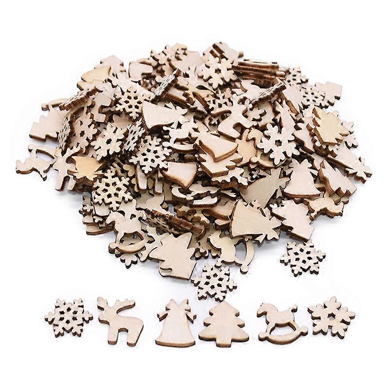 100Pcs Christmas Wooden Pendants Ornaments DIY Wood Crafts Xmas Tree Ornaments Snowflake Christmas Party Decorations for home