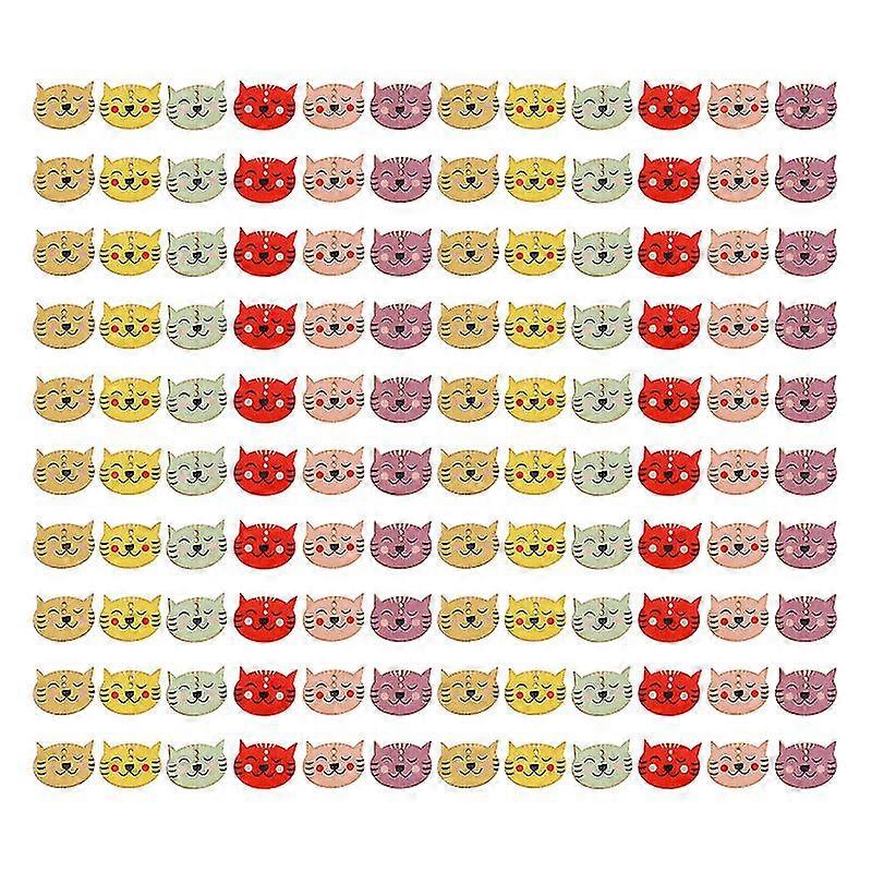 100pcs Wooden Clothes Button Diy Kitten Shaped Buttons Cartoon Buttons-random color