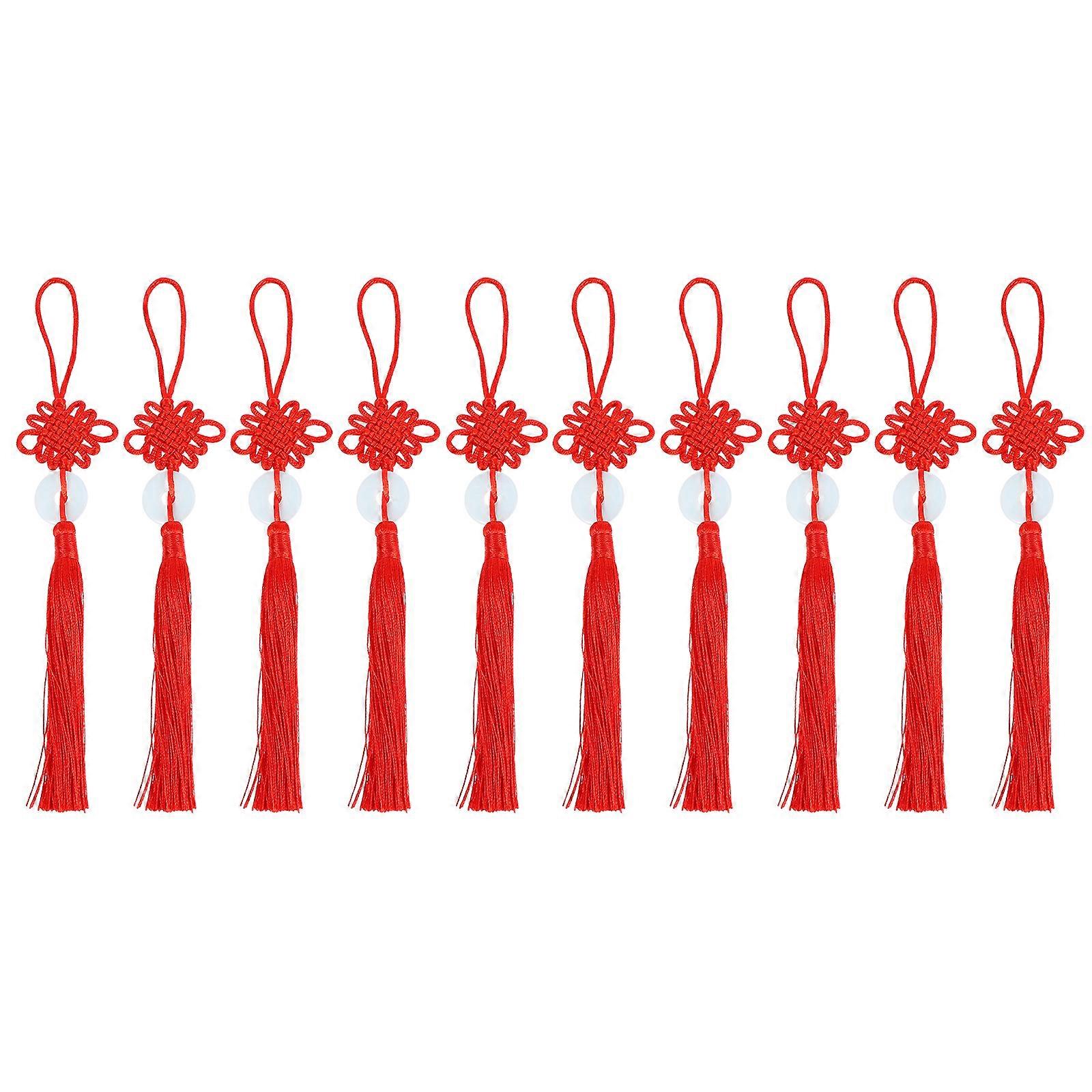 10Pcs Chinese Tassel Chinese Knot Pendant Pretty Car Hanging Decoration (Red)
