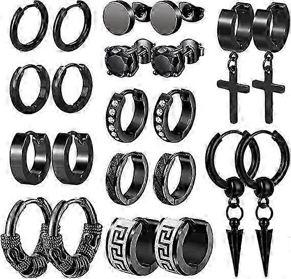 11 pairs Fashion Zircon Earring Set Stainless Steel Cross Hip Hop Men's Earrings