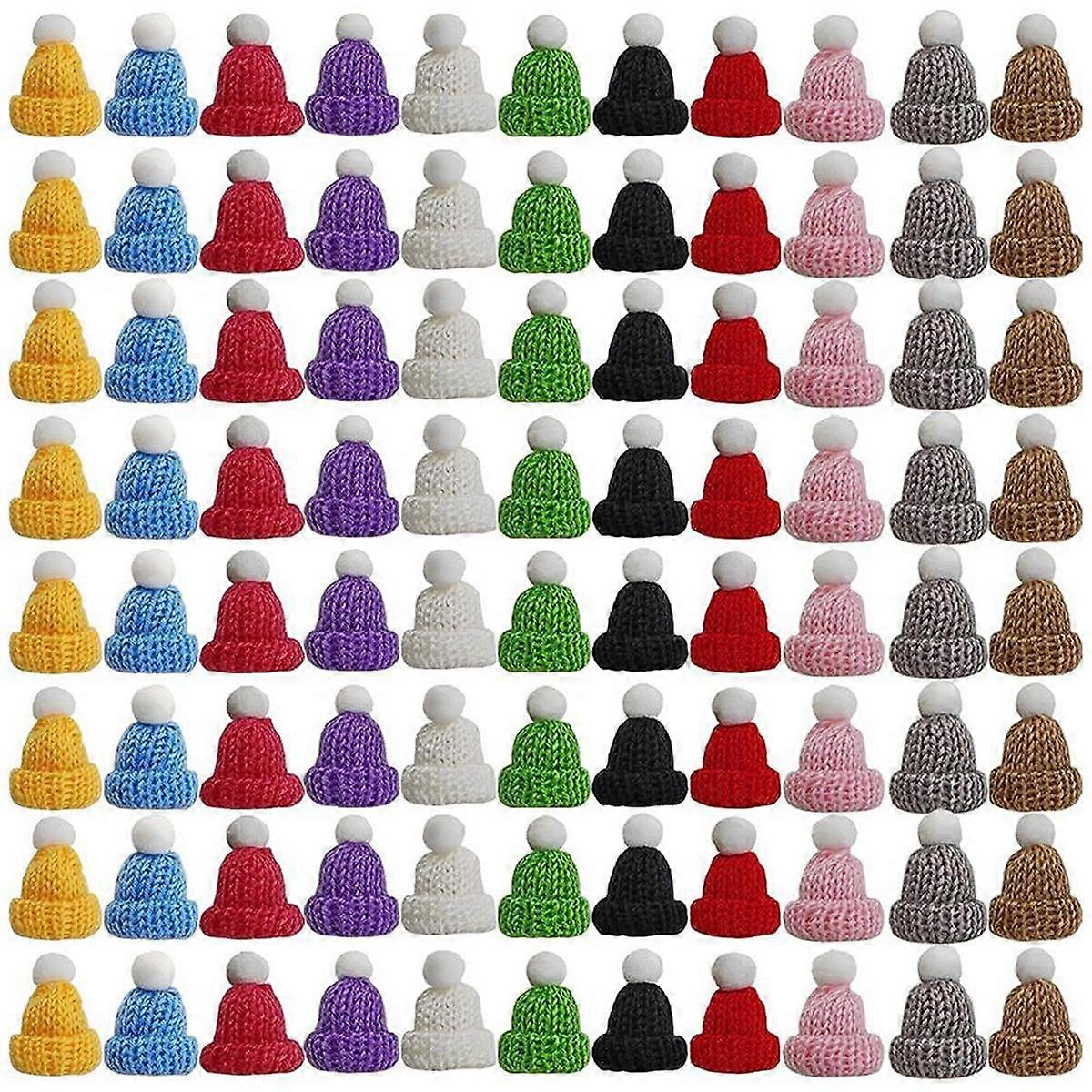 110PCS Mini Knitting Hats Christmas Mini Knitting Doll Hats Mini Wool Hat for Christmas Ornaments D