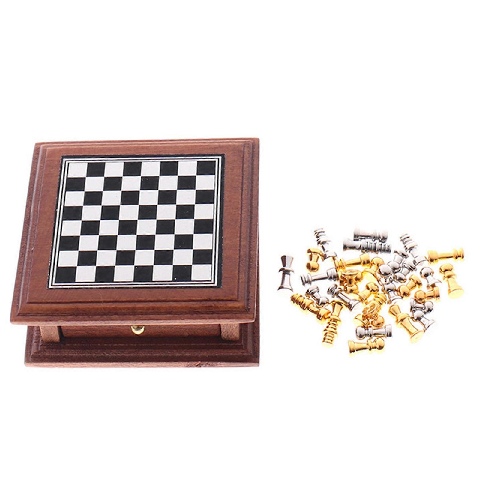 1/12 Scale Mini Chess Set For Model Enthusiasts Realistic Wooden Construction Playing Multicolor