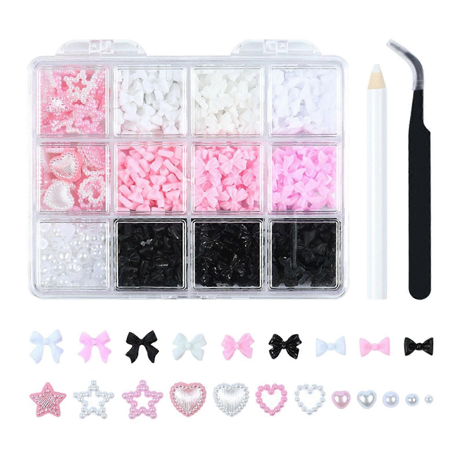 12 Grid Nail Charms Variety Set for Colorful and Stylish Nail Art Designs Bows Nail Decors Suitable for DIY Manicure