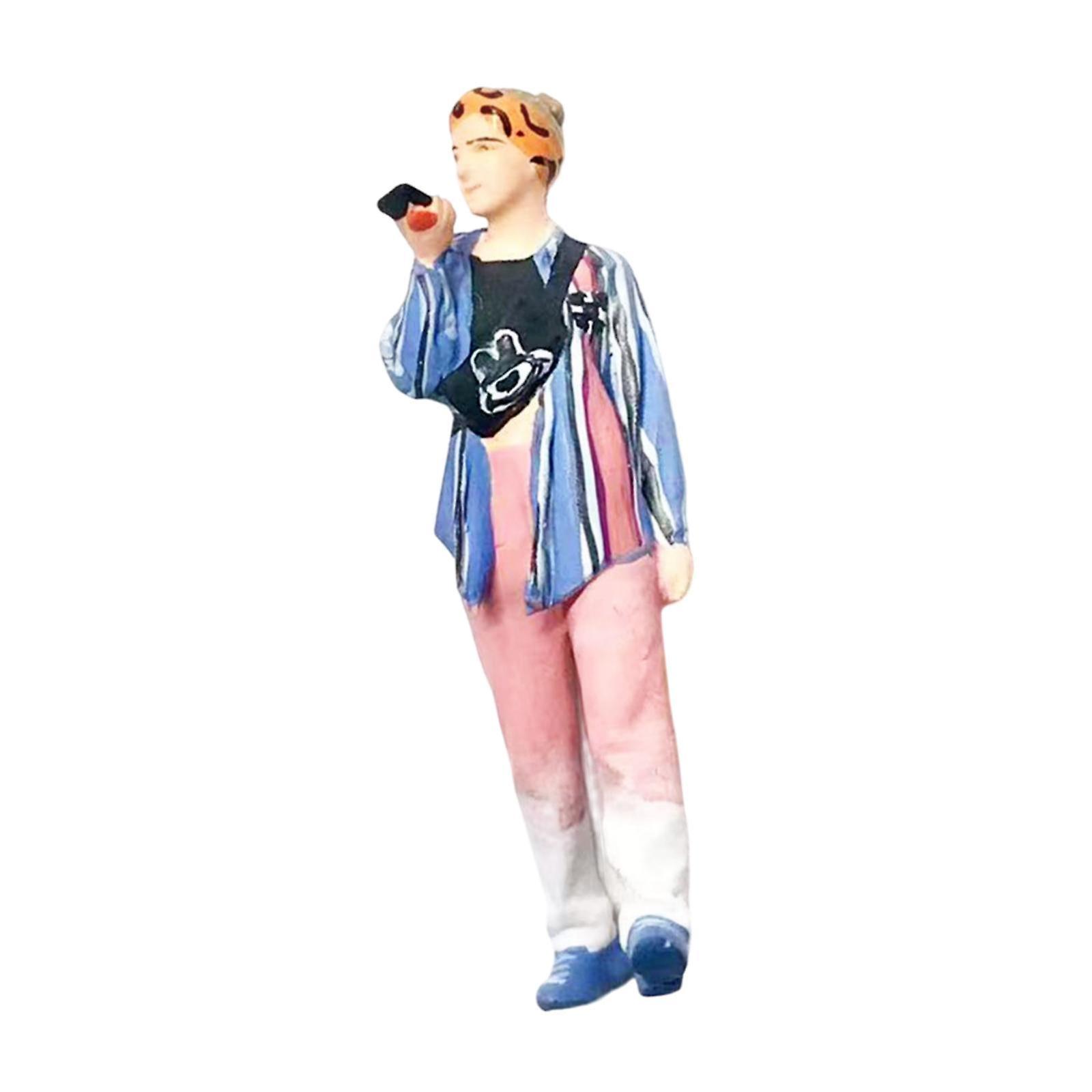 1/64 Girl Figure Resin Mini Doll for Micro Landscape Desktop Ornament Layout Blue