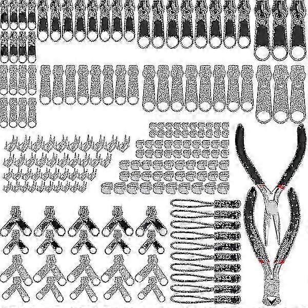 197-Piece Zipper Kit, Replacement Zipper Pulls Zipper Replacement with 2 Mini Pliers, for Clothes, Bag, Jackets, Tents