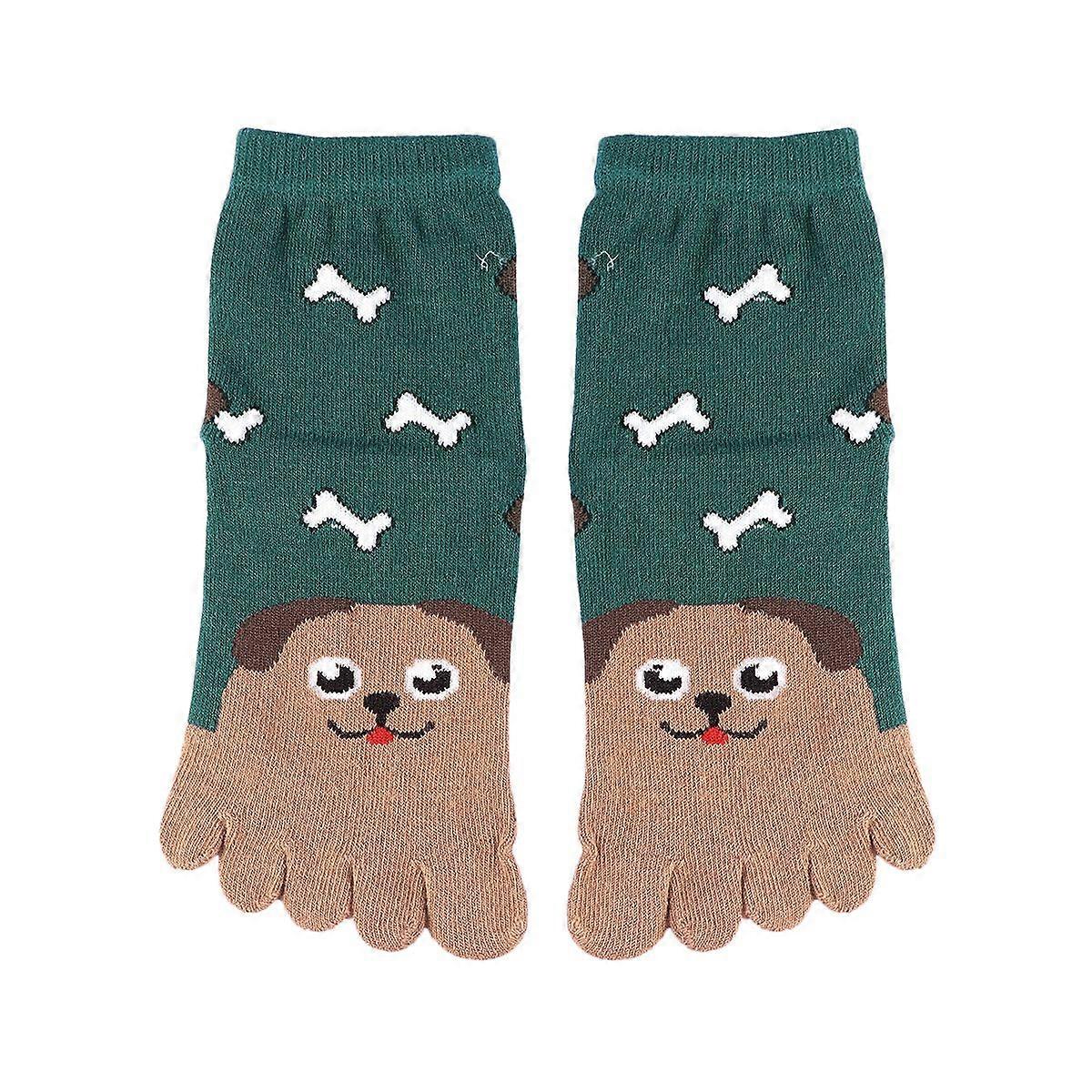 1Pair Children's Cotton Five-toe Socks Boys and Girls Baby Four Seasons Tube Cartoon Embroidery Animal Puppy Licking Bone Cotton Toe Socks for 7-12 Ye