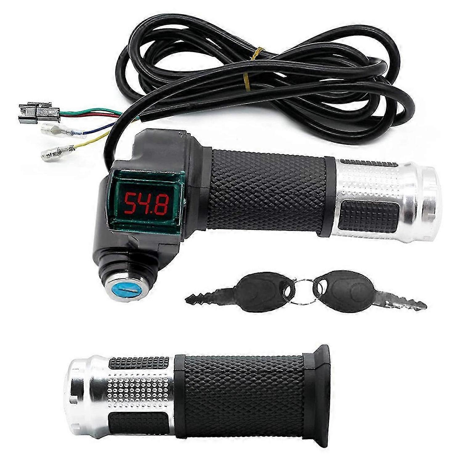 1Pair Electric Bicycle Throttle Grip with LCD Battery Voltage Display Key Knock, Universal Electric