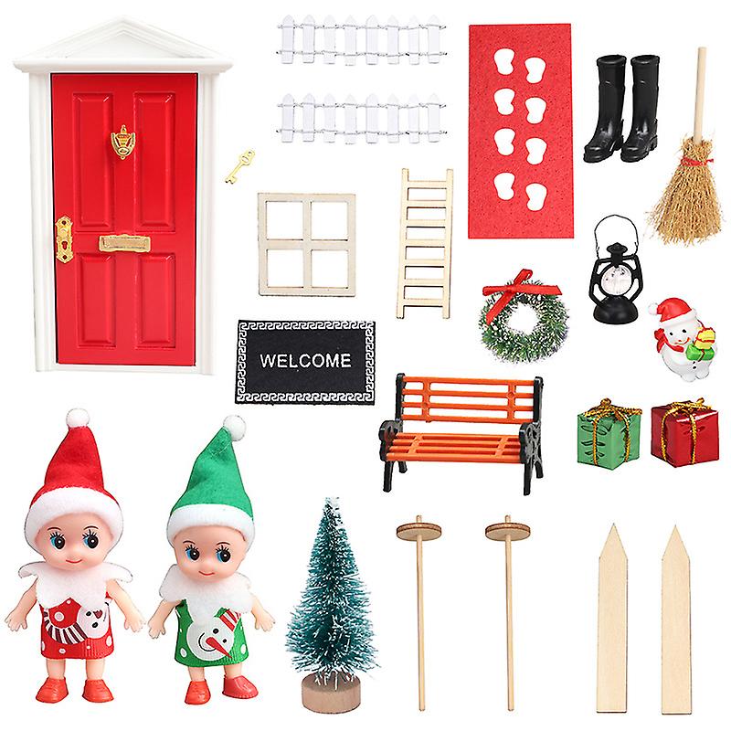 1set 1:12 Dollhouse Christmas Ornaments Elf Door Sled Bench Xmas Scene Decor Toy