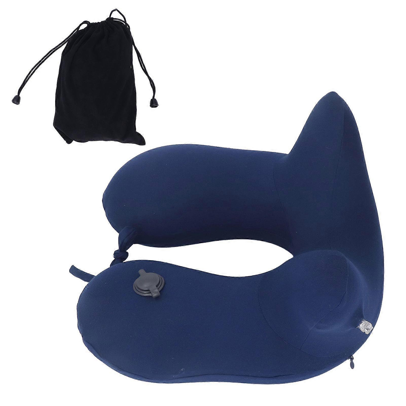 2 In1 Neck Pillow Portable Dark Blue Inflatable U Shaped Neck Pillow Breathable Airplane Pillow for Home Traveling Office YMHC