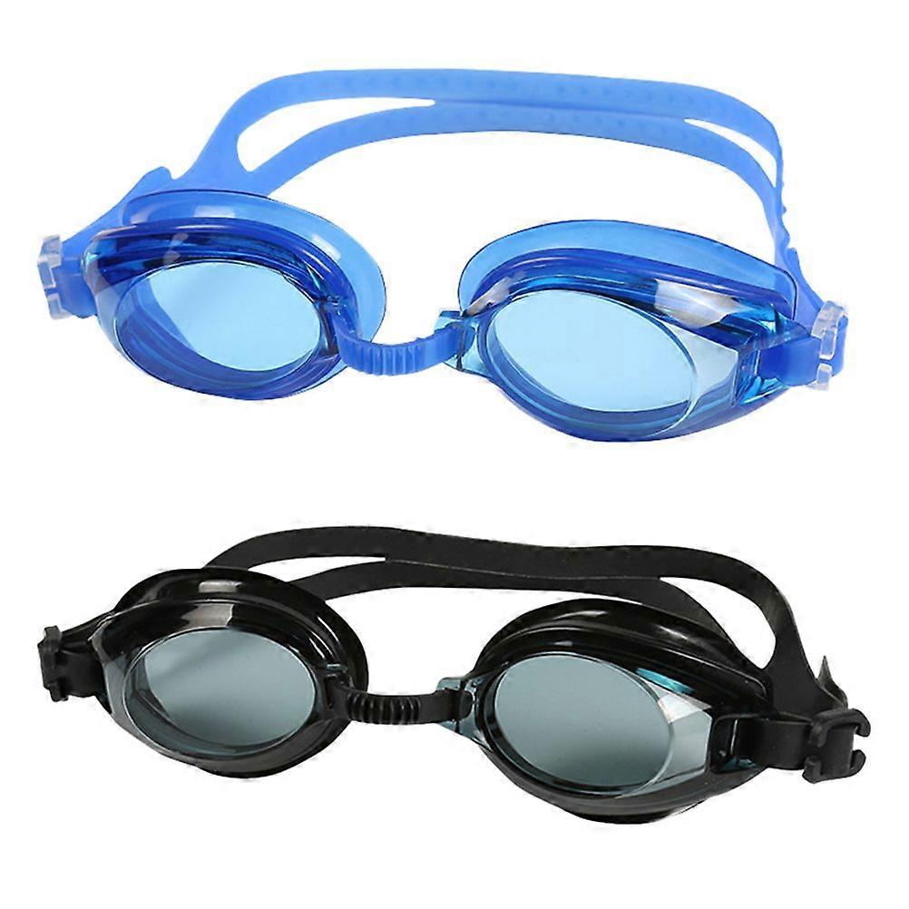 2 Pairs of Anti-fog Goggle Silicone Swimming Glasses High Visibility Waterproof Lenses for Men Women (Black/Royalblue)