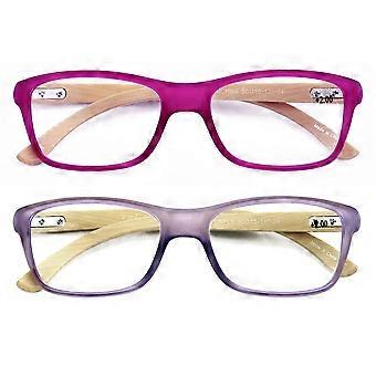 2 Pairs Geniune Bamboo Women Reading Glasses - Fun Color Clear Lens Reader 7015 +1.50
