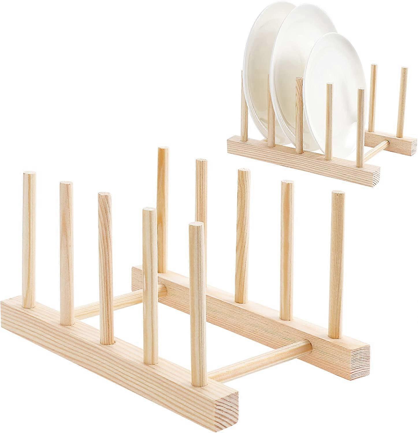 2 Pcs Bamboo Dish Drainer, Wooden Dish Rack, Bamboo Dish Rack, Bamboo Dish Drainer, for Bowl Cups Cutting Board CDs Books