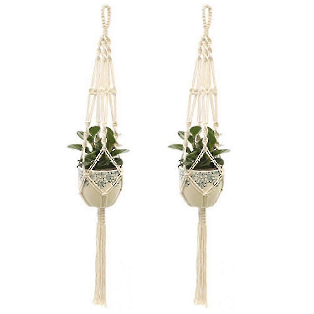 2Pcs Macrame Plant Hangers Indoor Outdoor Hanging Planter Basket Cotton Rope Hand-knitted flower pot net bag