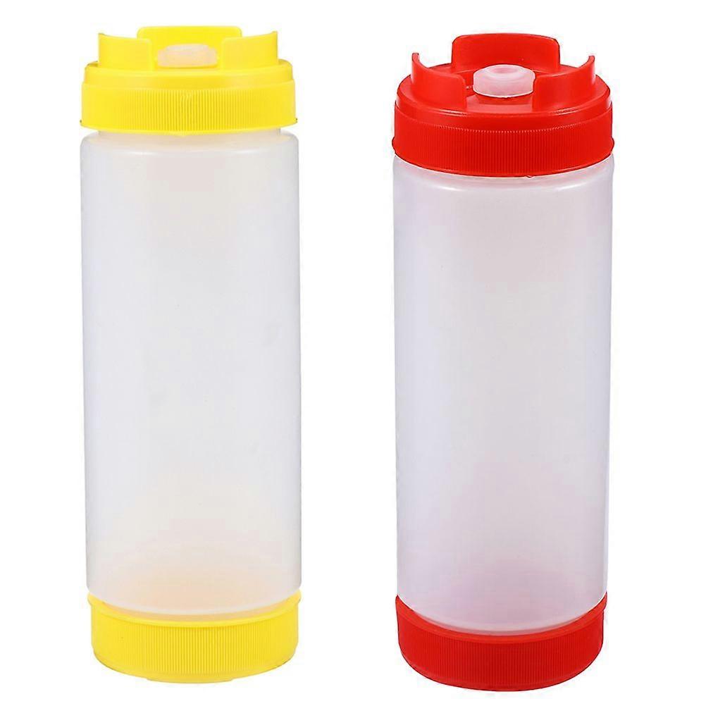 2pcs Plastic Sauce Bottles Two-headed Squeeze Bottles Tomato Catchup Dispenser