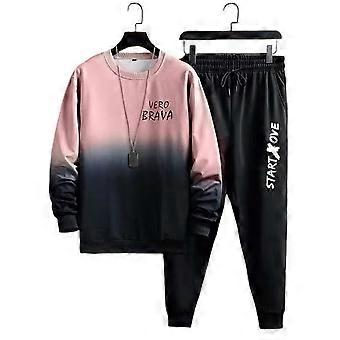 2 Pcs/Set Men Top Pants Suit Gradient Contrast Color Long Sleeve Round Neck Loose Elastic Waist Ankle banded Hip Hop Sports Tracksuit Fall Spring Top