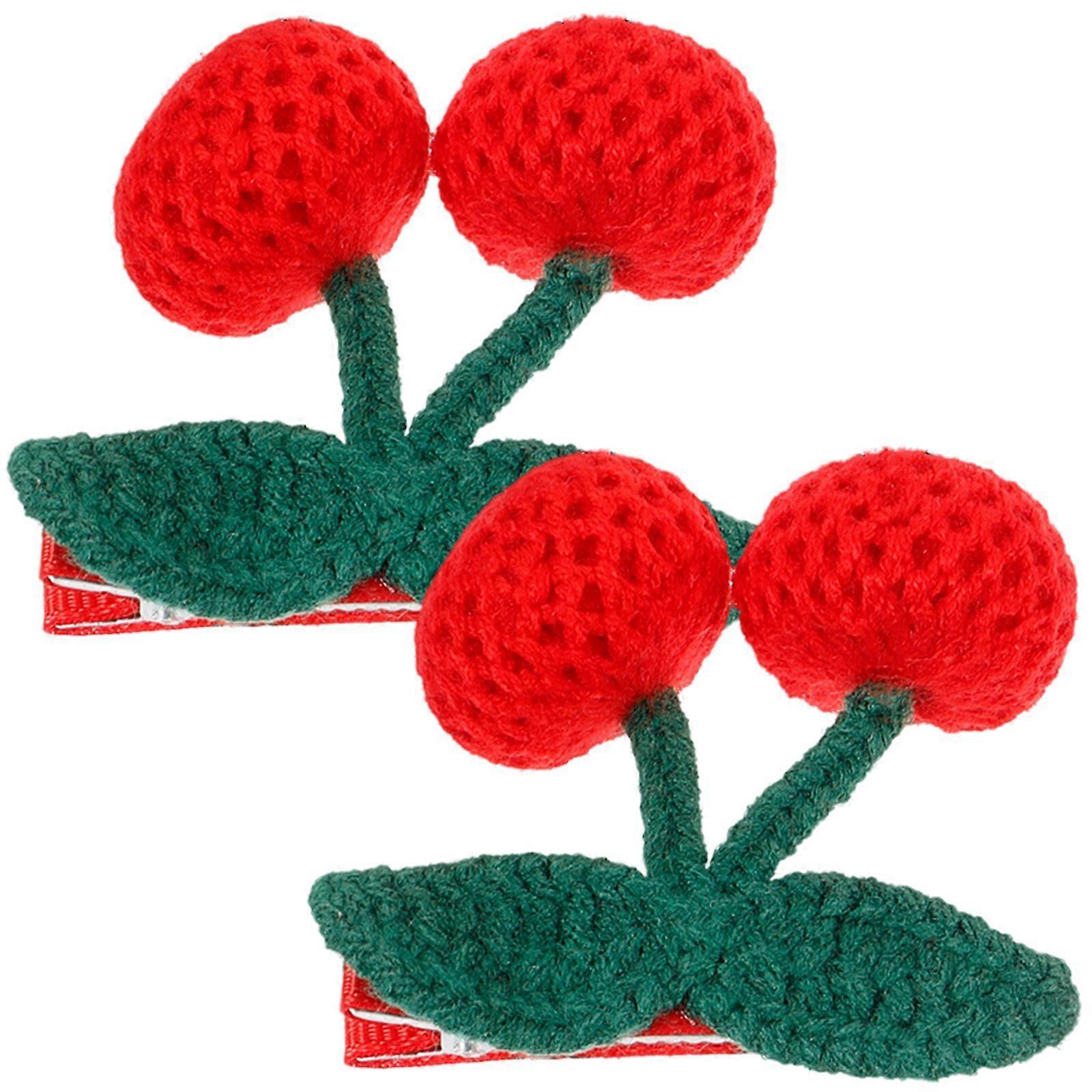 2 pcs Small Hair Clips Knitted Cherry Hair Clips Crochet Cherry Hair Clips Cute Hair Clips