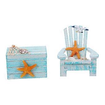 2Pcs Mediterranean Style Beach Chair Ornament Mini Wooden Box Adornments