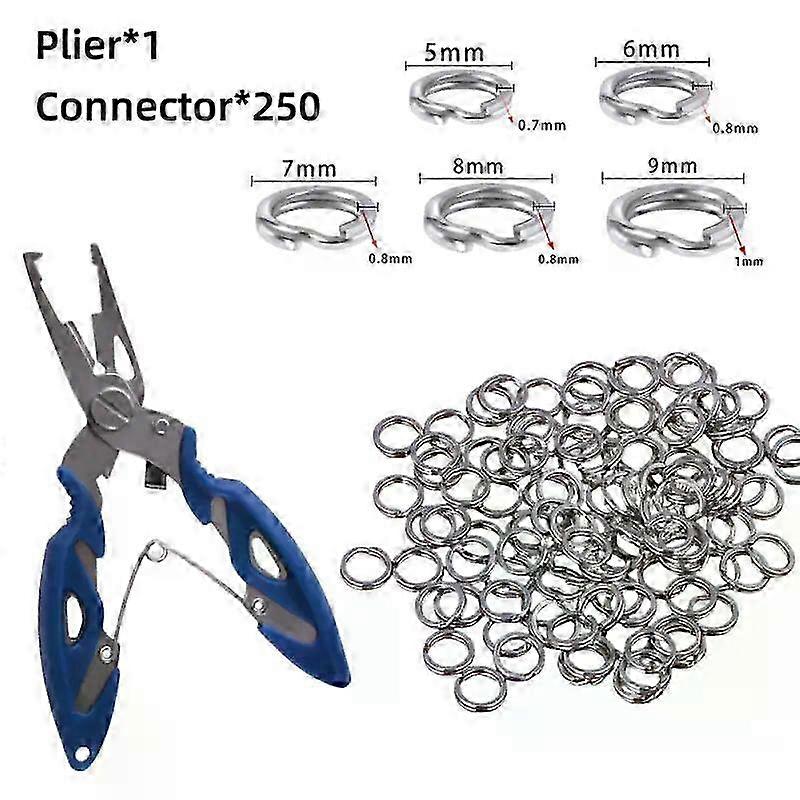 2025 251PCS Fishing Stainless Steel Split Ring Plier Set Split Ring Large Tensile Force Fishing Plier Tool Kit Fishing Lure Connector