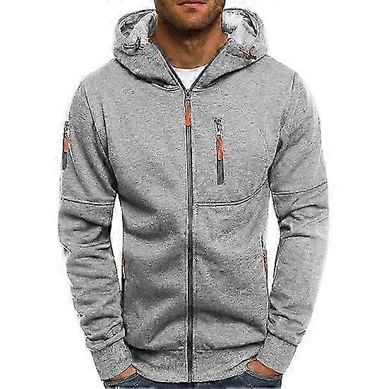 2025 Men Fall Winter Hoodie Loose Zip-up Long Sleeves Zipper Pockets Hooded Cardigan Thin Pure Color Daily Wear Casual Coat