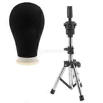 22 tums svart duk poly block professionell skyltdocka huvudmodell för peruk gör displaystil torr med stativ klämma stativ