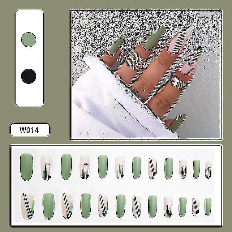 24pcs Green Nails Patch Glue Type Removable Long Paragraph Fashion Manicure A