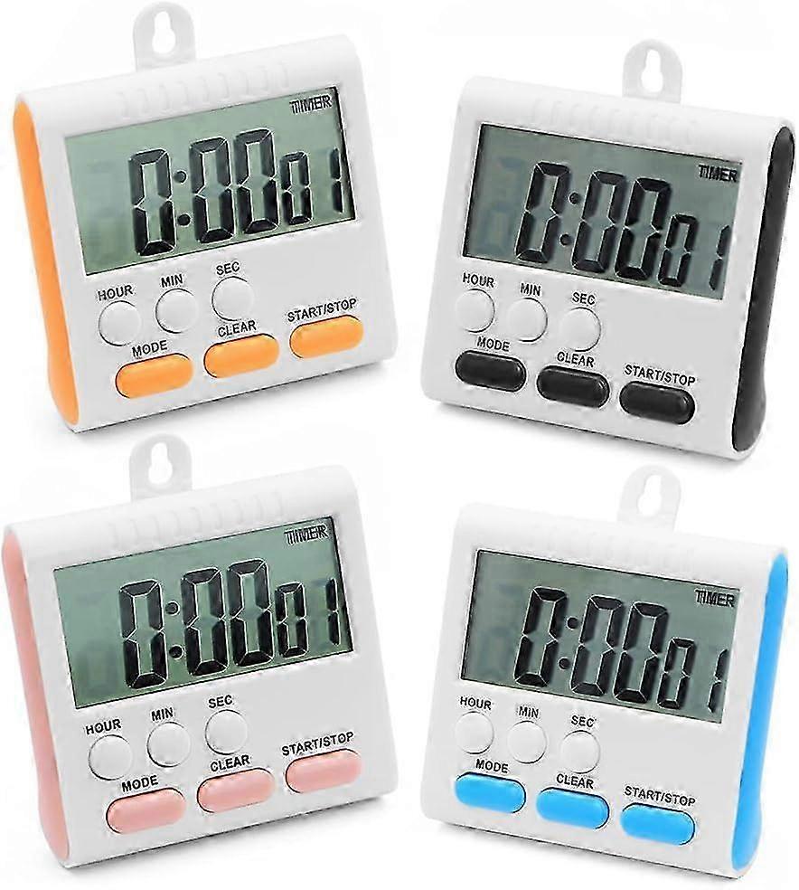 24 Hour Kitchen Timer,4 PCS Digital Magnetic Timer With Alarm,4-Color Oven Timers With Stand for Kitchen Cooking Shower